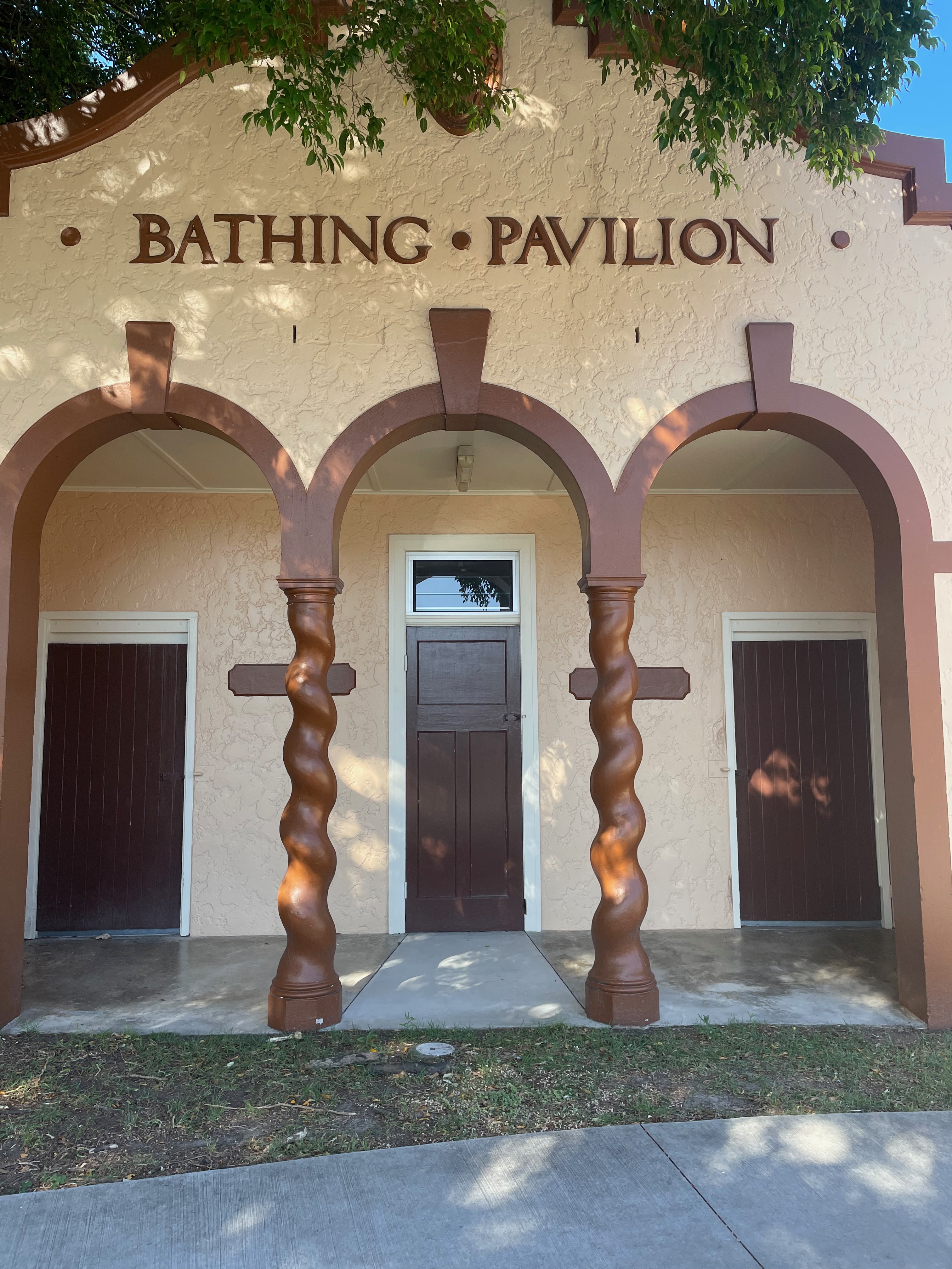 I was able to further explore sites of leisure through access to a studio at the Southport Bathing Pavilion over the summer of 2022/3. This site offers the perfect alignment for further development of the Let’s Organise Your Leisure project as the heritage listed pavilion is situated in the Broadwater parklands, where many people indulge is leisure behaviours on a daily basis. The pavilion was built concurrently with the Main Beach Pavilion in 1934. Both were designed by Brisbane architects Hall and Phillips in the Spanish Mission style and is located close to Railway Street which was the terminus of the Brisbane-Southport Railway. Furthering my interest and research into the colonial position of the need for safe it is noteworthy that bathing in the Broadwater was popular, particularly prior to the construction of the Jubilee Bridge to Main Beach in 1925. The bathing pavilion provided amenities for day trippers and holiday makers as Southport’s tourism enterprises grew and is divided into two main spaces for men and women to prepare to bathe and to dress afterwards. My southern studio was previously the ladies access space and features replications of the original dado rail and hooks that would have been used to hang towels and clothes.