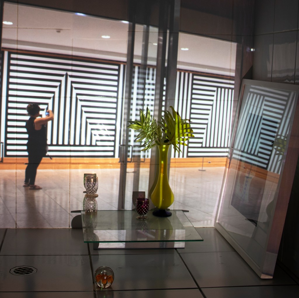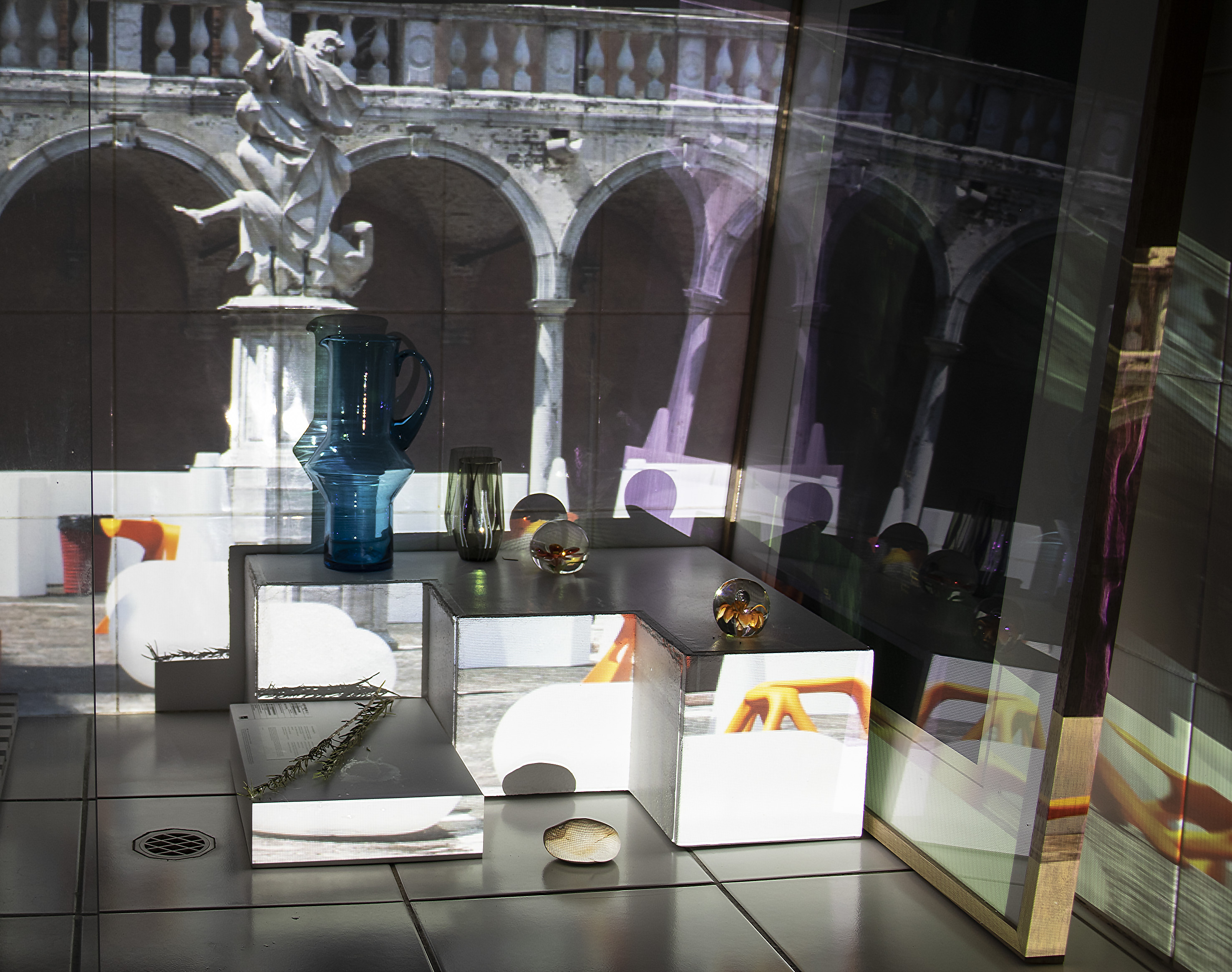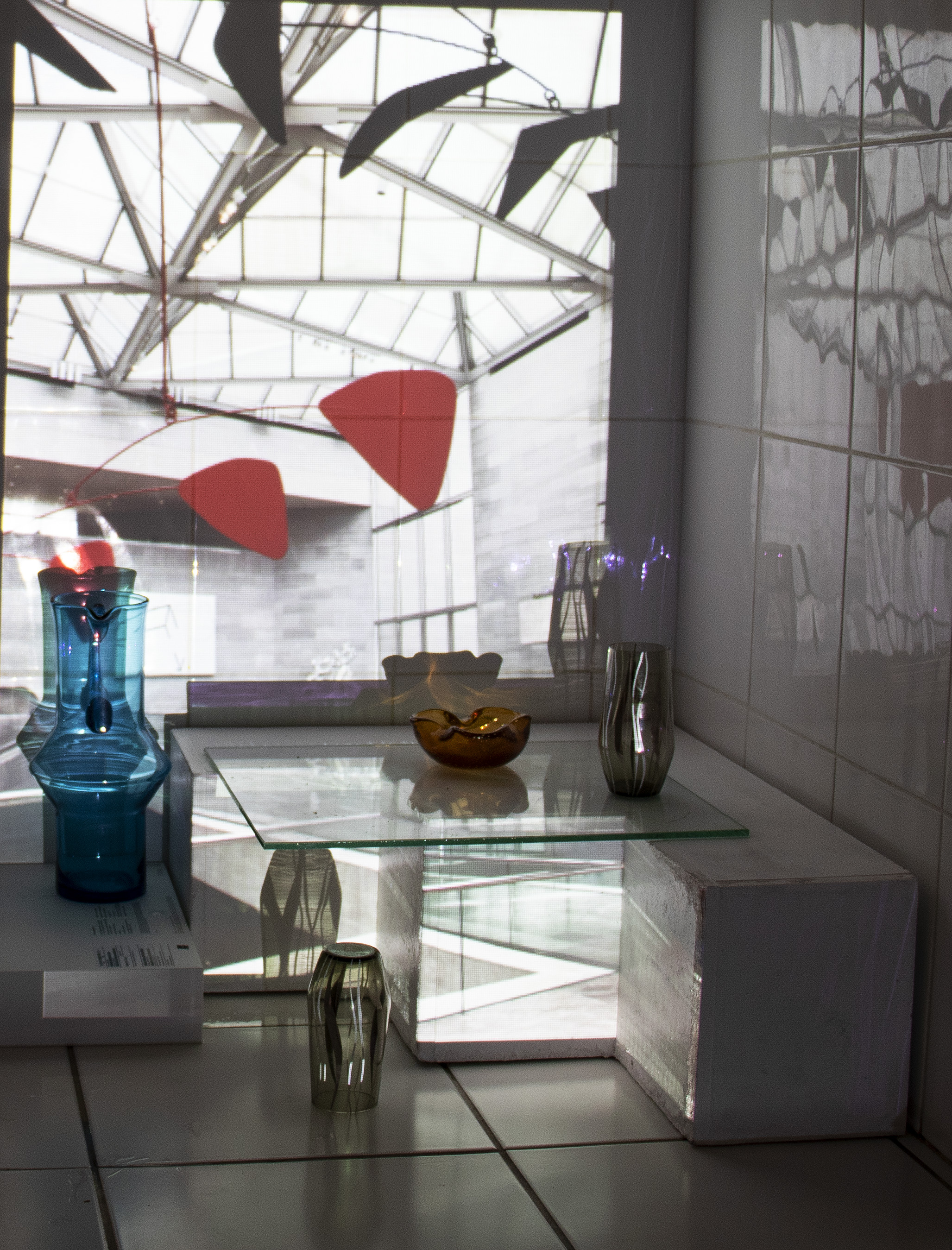 I capitalised on the reflective potential of a larger piece of glass on the right-hand side of the composition, thus creating a sense of replicating the projected image and objects in the final shot.